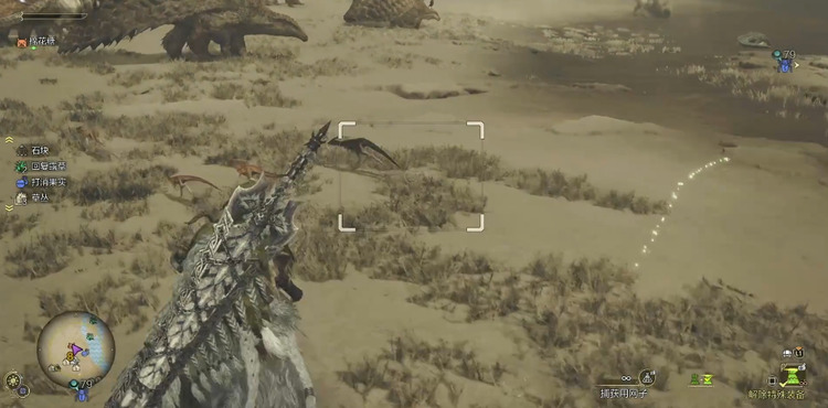 当角色接近5米时,是使用捕获网络的最佳时机。这时,快速瞄准并抛出网络就可以成功捕捉到。整个过程强调,一个慢字在整个过程中不能焦虑。如果中间受到其他怪物的干扰,比如沙原上很多常见的怪物,最好提前清理干净,然后集中精力捕捉。在区域8和10的具体位置,可以优先检查沙丘背风或岩石缝隙,因为黑风切龙喜欢躲在这些地方避风沙,前面说它经常和普通风切龙聚在一起。如果你想在民族中识别它,你必须看到它的形状和颜色。